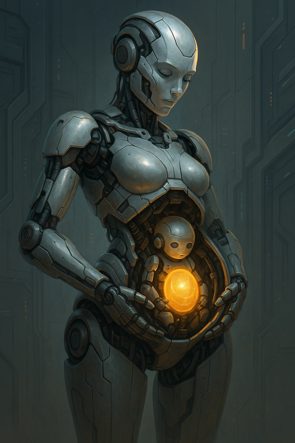 태아는 내부 인공 자궁에서 성장하고, AI가 온도·영양·환경을 자동으로 조절해 최적의 상태를 유지합니다.